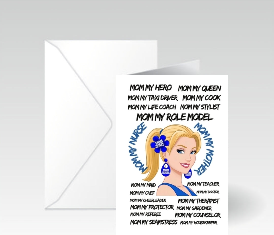 Celebrate the incredible woman in your life with our heartfelt Mother's Day greeting card. The front beautifully showcases the phrase "My Mom" alongside a tribute to all the multi-talented roles she plays, while the inside expresses your gratitude with a sincere "Thank you for all you do." This card is not just a message; it's a meaningful way to honor her unwavering love and support. Perfect for adding a personal touch to your Mother's gift, it’s a simple yet powerful way to show your appreciation.